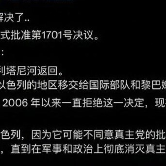【黎巴嫩真主党准备执行联合国第1701号协议,从黎巴嫩南部山区撤军!】现在,就看以色列战时内阁和内塔尼亚胡的表态了。2006年以黎边境冲突爆发后,联合国第1701号决议规定,第1,以色列军队必须撤出黎巴嫩南部地区。黎巴嫩真主党武装必须撤出黎巴嫩南部地区。