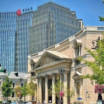 中山广场:十栋百年建筑,十条放射状街道,集合了罗马式,哥特式等欧洲建筑风格。